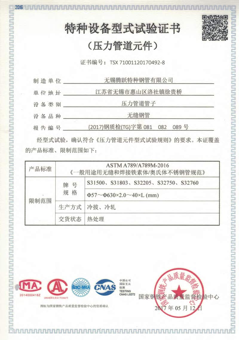 無錫騰躍特種鋼管有限公司創建于1987年,地處江蘇省無錫市惠山區洛社鎮。公司占地面積18萬平方米,現有員工350人,是一家專業生產不銹鋼無縫管的企業,年產能5萬噸。主要規格:外徑6~630mm、壁厚0.7~40mm。主要材質:奧氏體、奧氏體-鐵素體、鎳基合金等。 公司是中石化、中石油、中海油、核電的供應商網絡成員單位,是江蘇省AAA級信用單位。公司先后通過ISO9001質量管理體...